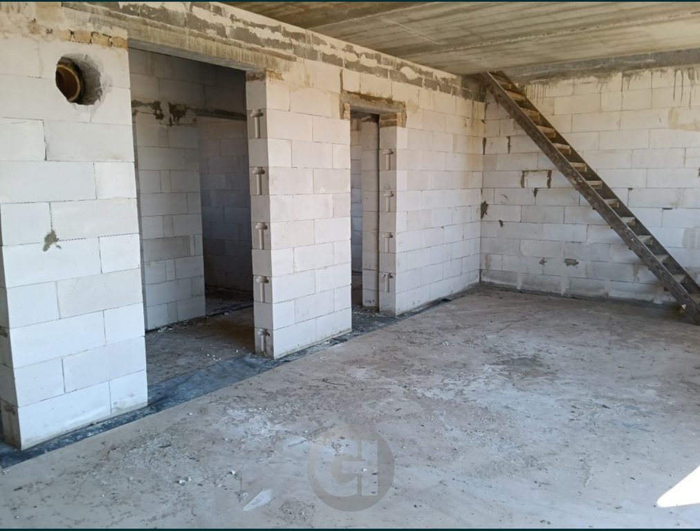 Poddasze o pow. ok. 60 m2 użytkowe obejmujące jedną otwartą przestrzeń, z podciągami żelbetonowymi dającymi możliwość łatwego montażu okna w dowolnym miejscu i wydzielenia dowolnej ilości pokoi.