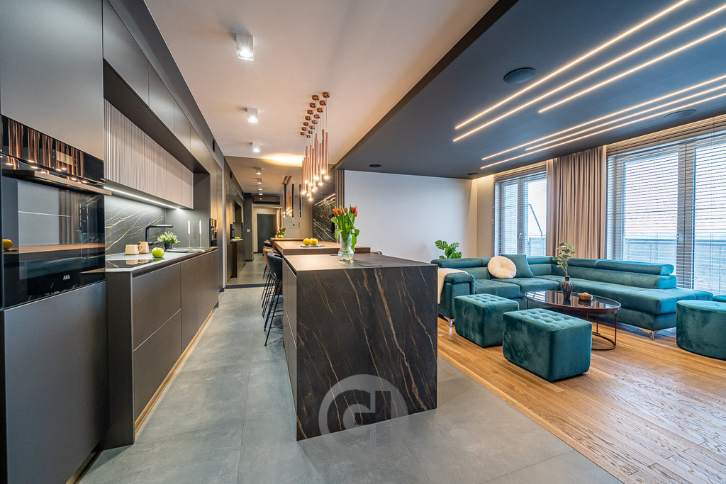To mieszkanie zostało zaprojektowane tak, aby było nie tylko piękne, ale również trwałe i komfortowe w codziennym użytkowaniu.
