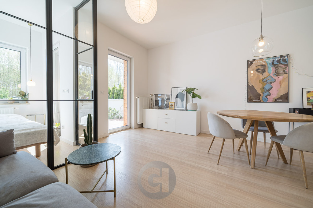 Do mieszkania przynależy ogródek do wyłącznego korzystania – świetne przedłużenie przestrzeni dziennej.