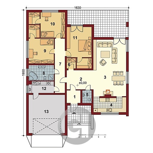 Dom jest parterowy, niepodpiwniczony, z garażem dwustanowiskowym – idealny dla rodzin, które cenią funkcjonalność i komfort.
