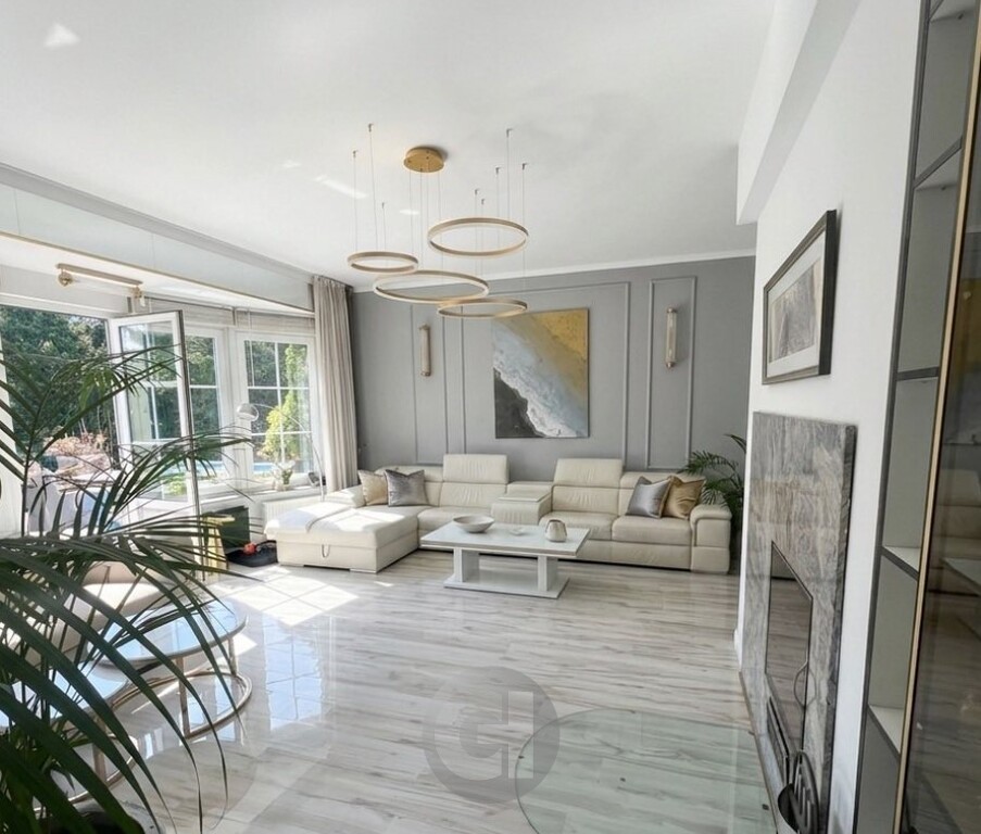 Całkowita powierzchnia domu wynosi 383 m2 (w tym poddasze) oraz dwustanowiskowy garaż w bryle budynku (pow. 34 m2) z automatyczną bramą oraz ogród zimowy 70m2.