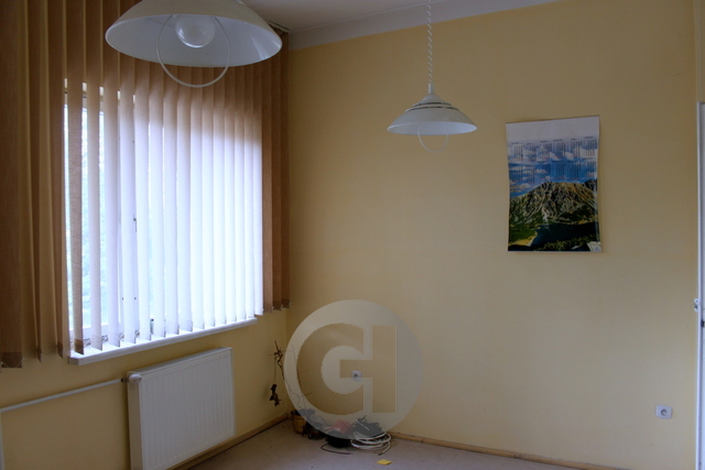 Piętro: 3 pomieszczenia biurowe, w tym jedno z własną łazienką i kuchnią, odrębne wc na korytarzu.