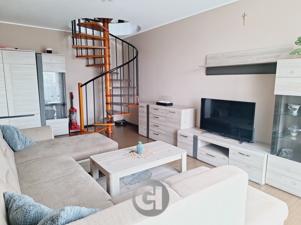• Jasny salon z wyjściem na balkon, który zapewnia dodatkową przestrzeń do relaksu.