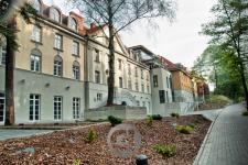 Lokal znajduje się na I piętrze w niskim, III kondygnacyjnym, nowo wybudowanym bloku mieszkalnym wyposażonym w windę. Budynek cechuje się nowoczesną architekturą oraz wysokim standardem wykończenia części wspólnych. Na terenie dziedzińca dostępne są miejsca parkingowe, a dodatkowo istnieje możliwość wynajmu miejsca postojowego w hali garażowej pod budynkiem.