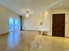 Salon z wyjściem na duży balkon,
