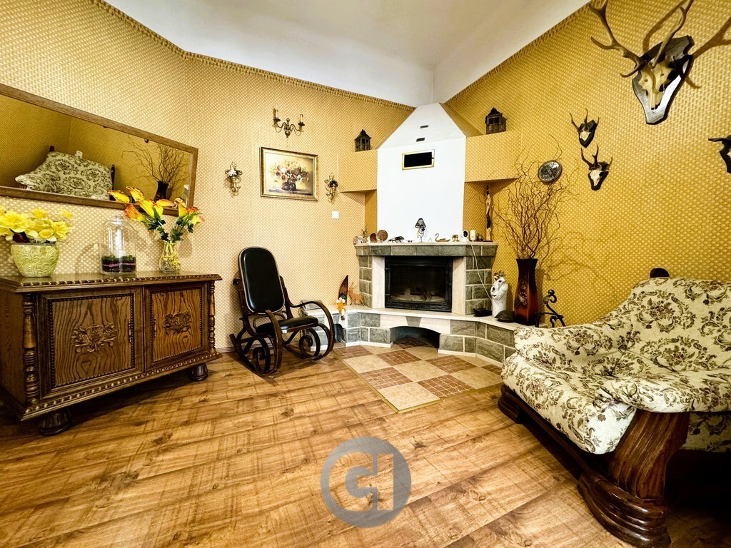 W salonie znajduje się klimatyczny kominek, który poza walorami estetycznymi pełni również funkcję dodatkowego źródła ogrzewania, tworząc wyjątkową atmosferę wnętrza.