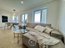 Salon z wyjściem na obszerny balkon,