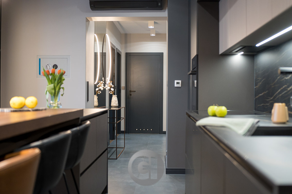 To mieszkanie zostało zaprojektowane tak, aby było nie tylko piękne, ale również trwałe i komfortowe w codziennym użytkowaniu.