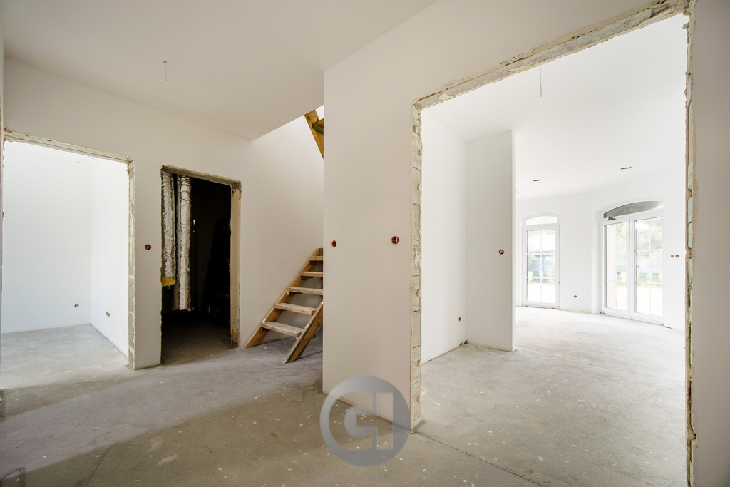 • dom wykończony w standardzie deweloperskim + – ściany są już szpachlowane i pomalowane