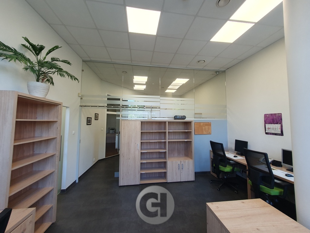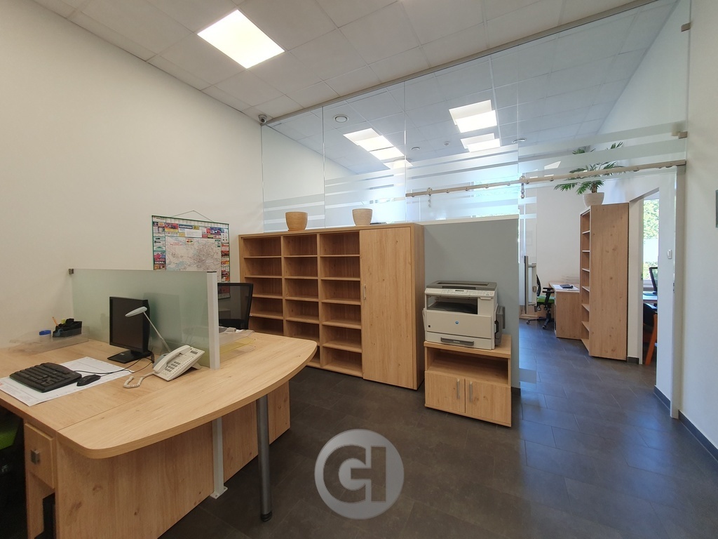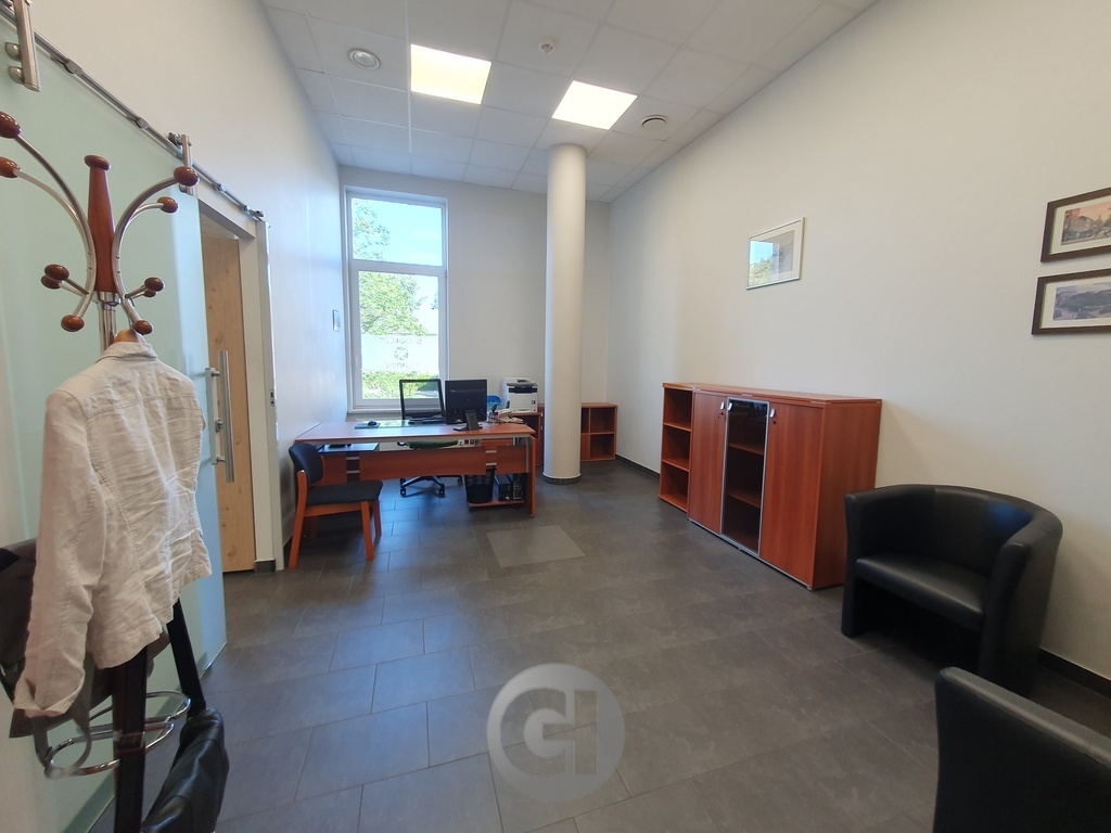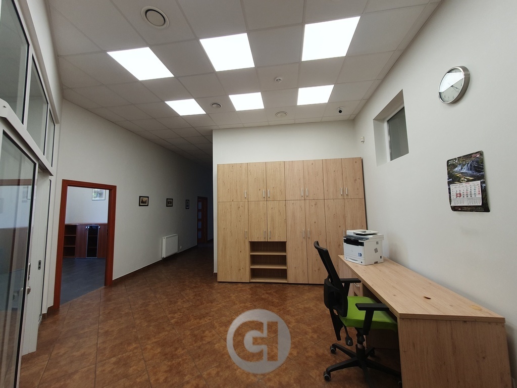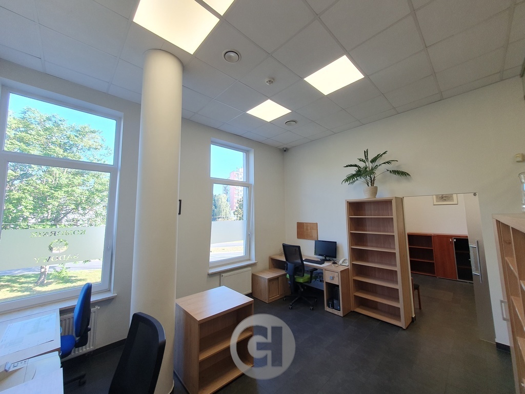 Układ funkcjonalny obejmuje kilka wyodrębnionych pomieszczeń biurowych z dostępem do światła dziennego, trzy