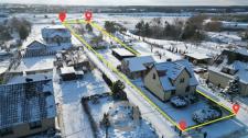 Nieruchomość składa się z dwóch działek o łącznej powierzchni 2844 m2. Teren płaski - pierwsza działka ogrodzona i zagospodarowana. Wokół domu położono kostkę brukową, zapewniającą wygodny dojazd i komunikację.