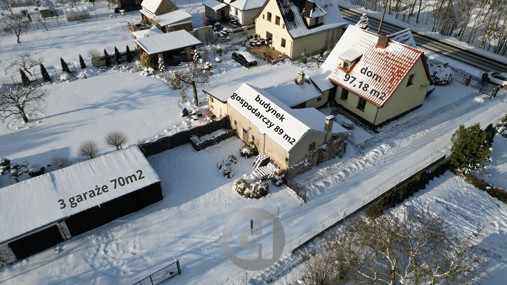 Na posesji znajduje się budynek garażowy w zabudowie szeregowej – jeden garaż murowany oraz dwa garaże drewniane. Dodatkowo budynek gospodarczy połączony z domem o powierzchni około 89 m2, składający się z 5 pomieszczeń, który może pełnić funkcję magazynową, warsztatową lub zostać zaadaptowany według potrzeb.