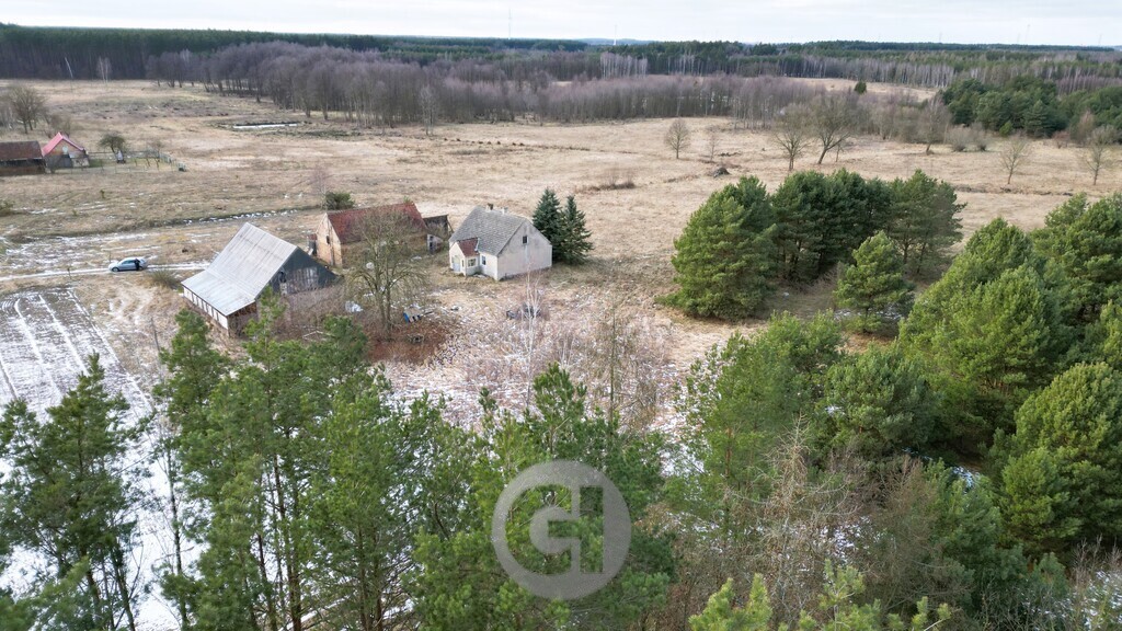 Nieruchomość położona jest w otoczeniu pól i lasów – w spokojnej, rozproszonej zabudowie. To miejsce dla osób ceniących prywatność, przestrzeń i bliskość natury. W okolicy dominują tereny rolnicze i leśne, co gwarantuje ciszę i brak intensywnej zabudowy.