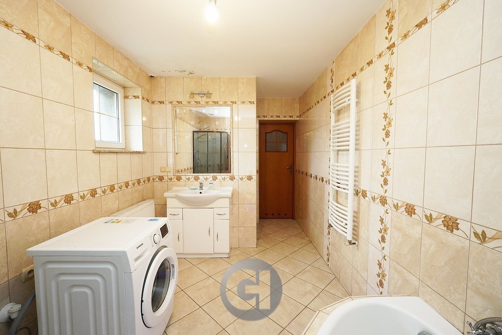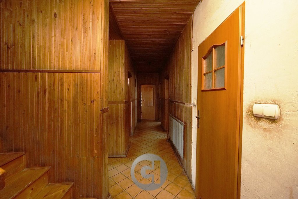 Dom z przeznaczeniem do remontu. Ściany w większości pomieszczeń szpachlowane i wymalowane, w korytarzu boazeria, w łazience kafle. Na podłogach w zależności od pomieszczeń panele, parkiet oraz płytki. Wszystkie okna wymieniono na PCV.