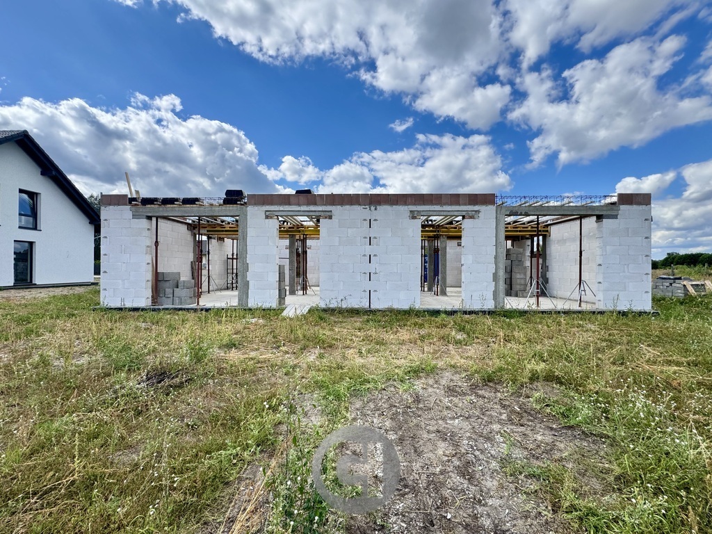 Na sprzedaż dom w zabudowie bliźniaczej w stanie surowym zamkniętym o powierzchni użytkowej 104,58 m², położony na dużej działce o powierzchni 550 m², w miejscowości Łagodzin, gmina Deszczno.