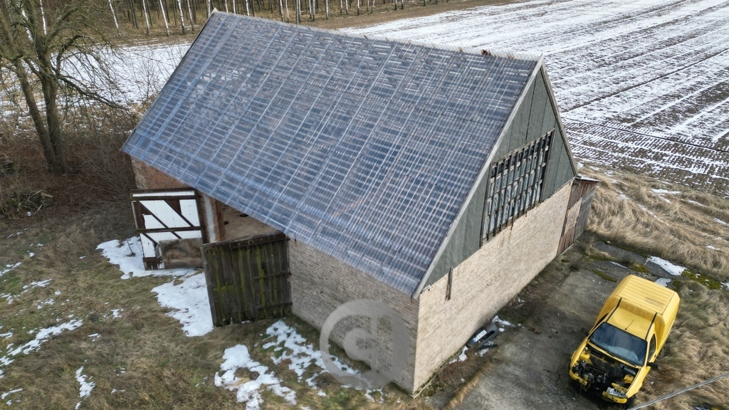 122 m² – budynek w dość dobrym stanie technicznym, z dużą otwartą przestrzenią, z szeroką i wysoką bramą wjazdową – idealny na garaż, warsztat, magazyn lub adaptację pod działalność.